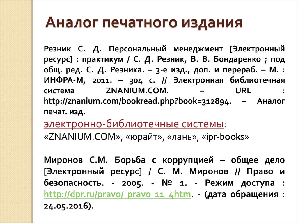Аналог печатного изданияРезник С. Д. Персональный менеджмент [Электронный