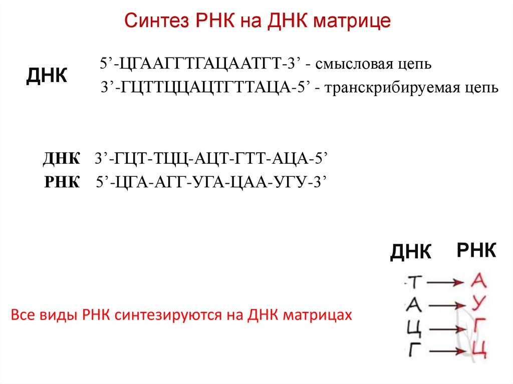Синтез РНКСинтез нуклеиновых кислот происходит в направлении от 5'-конца молекул к