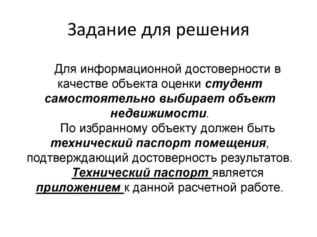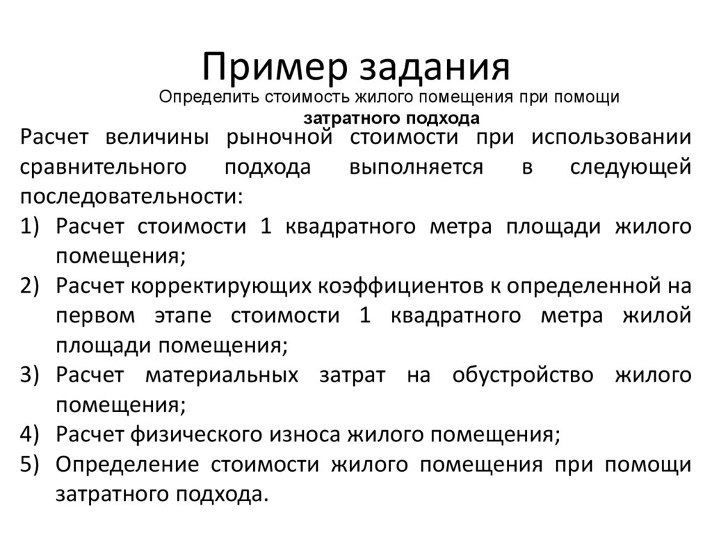 Пример заданияОпределить стоимость жилого помещения при помощи