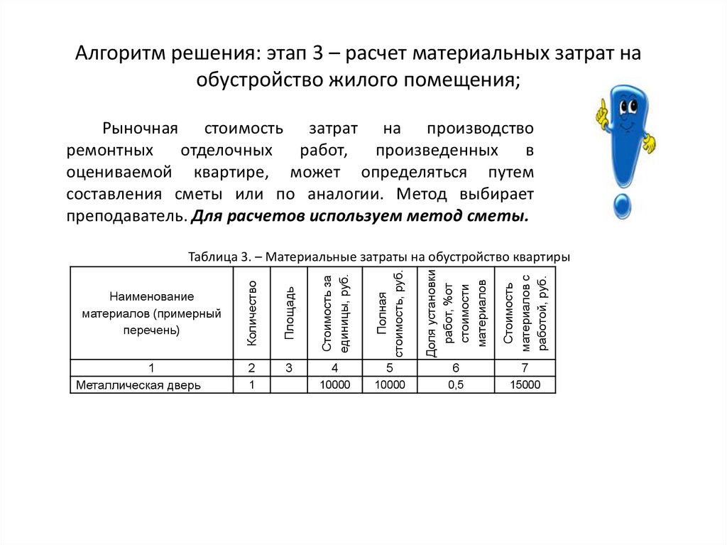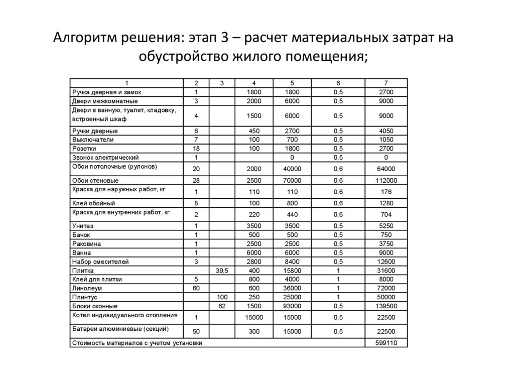 Алгоритм решения: этап 5 – определение стоимости жилого