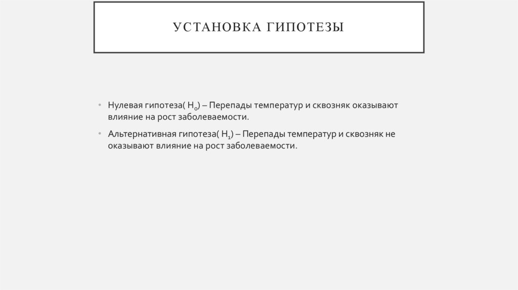 УСТАНОВКА ГИПОТЕЗЫ• Нулевая гипотеза( Н0) – Перепады температур и сквозняк оказывают