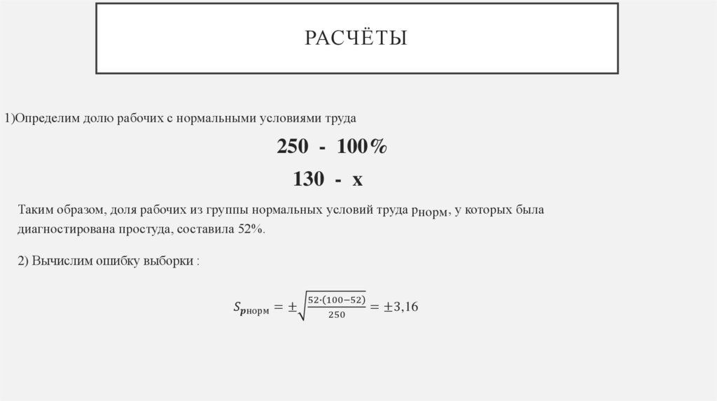 Таким образом, доля рабочих из группы нормальных условий труда pнорм , у которых была