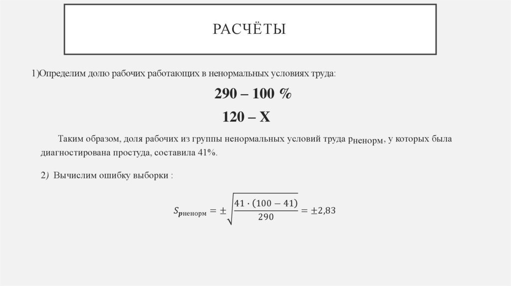 РАСЧЁТЫ1)Определим долю рабочих с нормальными условиями труда