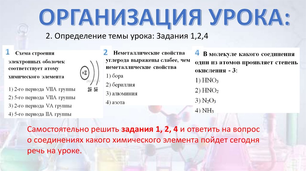 2. Определение темы урока: Задания 1,2,4Самостоятельно решить задания 1, 2, 4 и ответить на вопрос