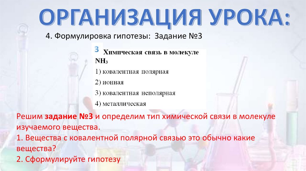 4. Формулировка гипотезы: Задание №3Решим задание №3 и определим тип химической связи в молекуле