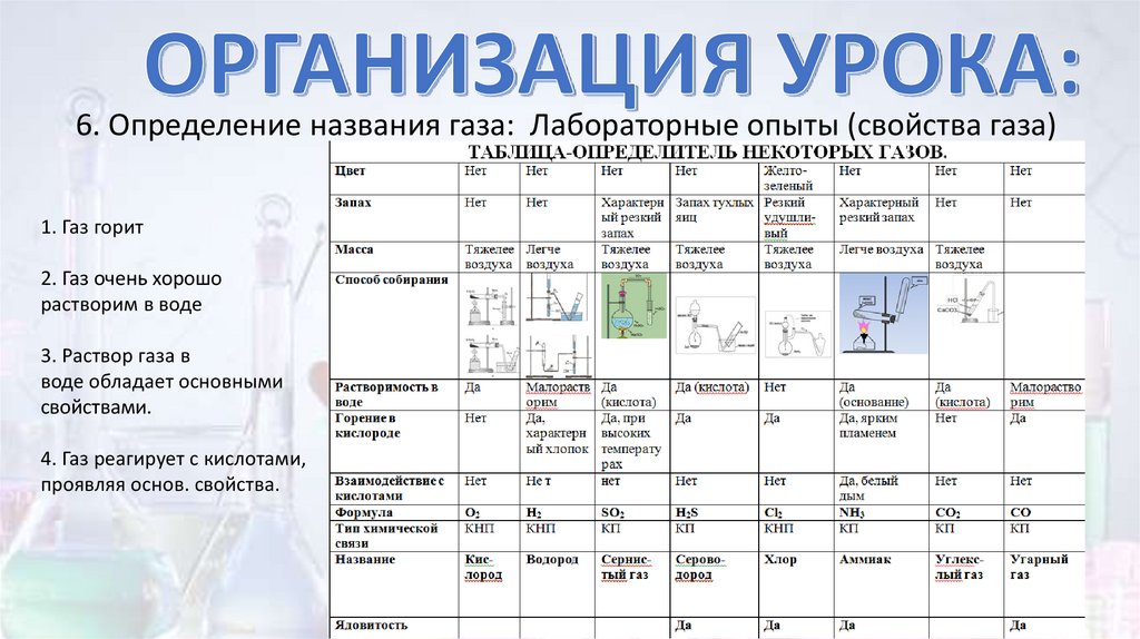 6. Определение названия газа: Лабораторные опыты (свойства газа)1. Газ горит