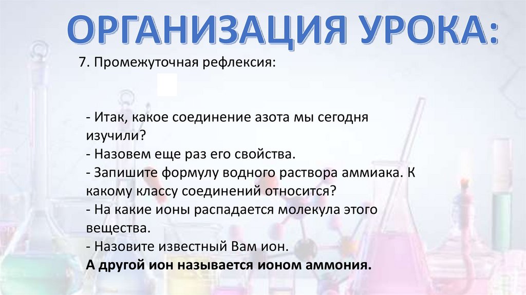 7. Промежуточная рефлексия:- Итак, какое соединение азота мы сегодня