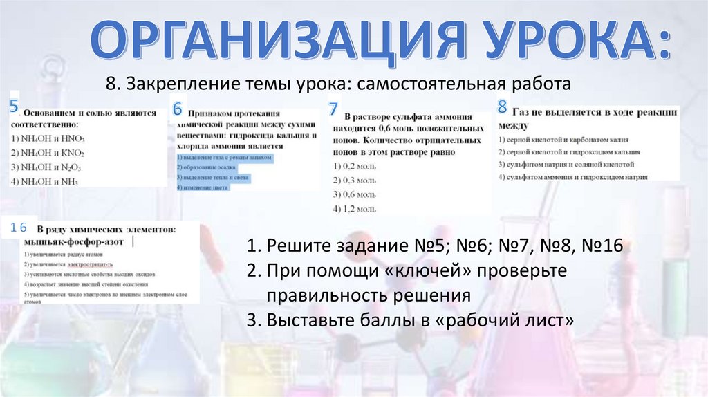 8. Закрепление темы урока: самостоятельная работа1. Решите задание №5; №6; №7, №8, №16