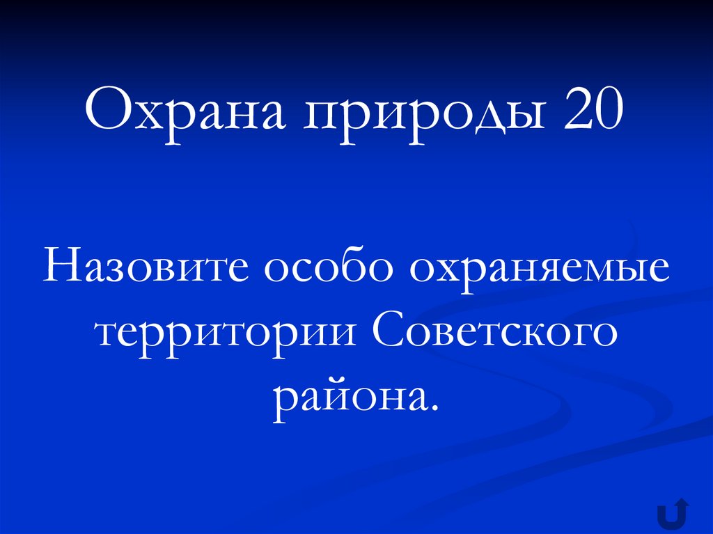 Охрана природы 20Назовите особо охраняемые