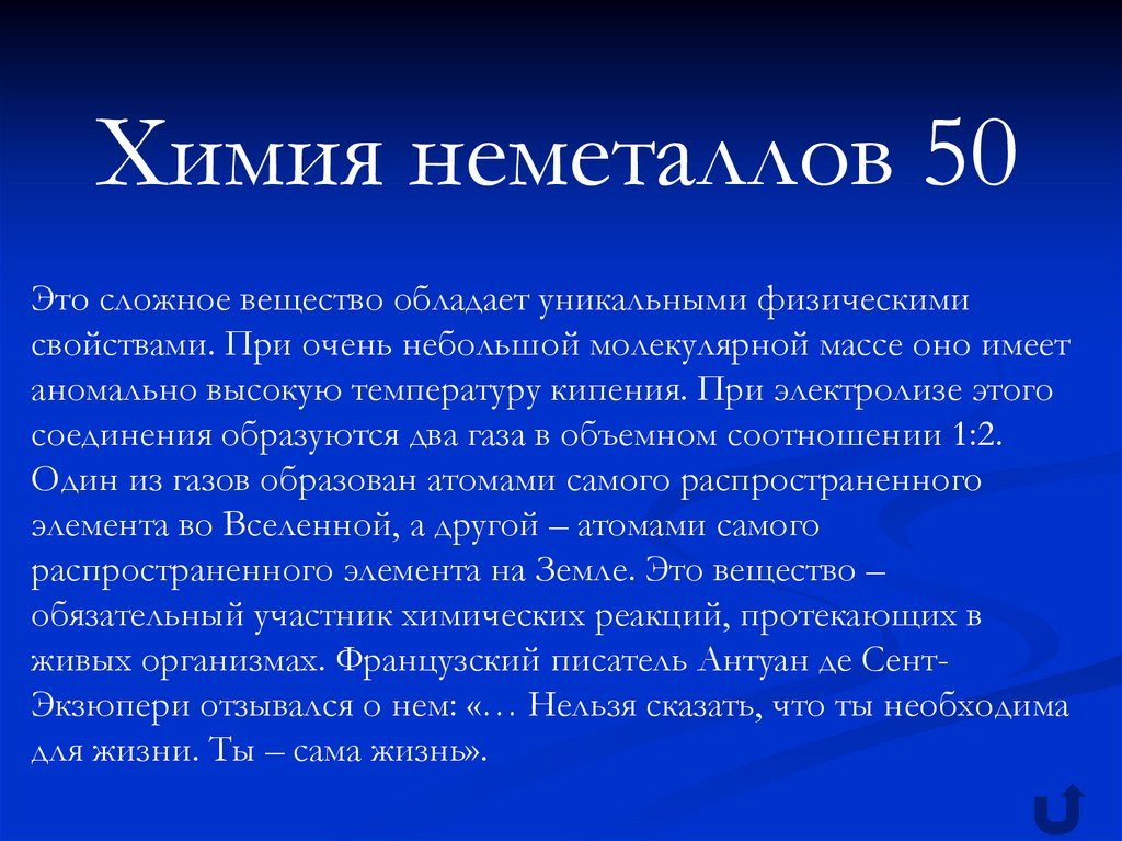 Химия неметаллов 50Это сложное вещество обладает уникальными физическими