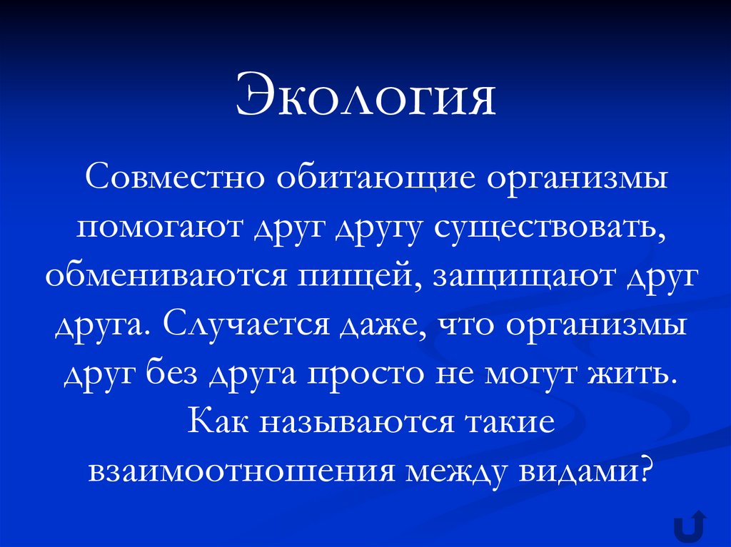 ЭкологияСовместно обитающие организмы