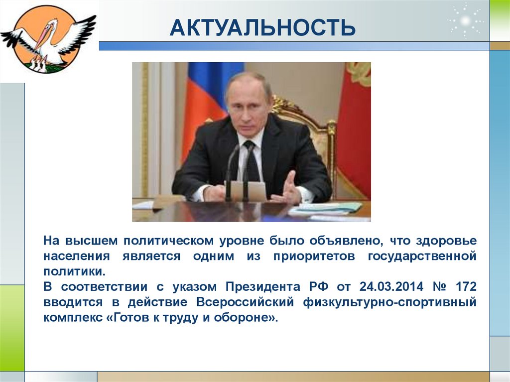 АКТУАЛЬНОСТЬНа высшем политическом уровне было объявлено, что здоровье