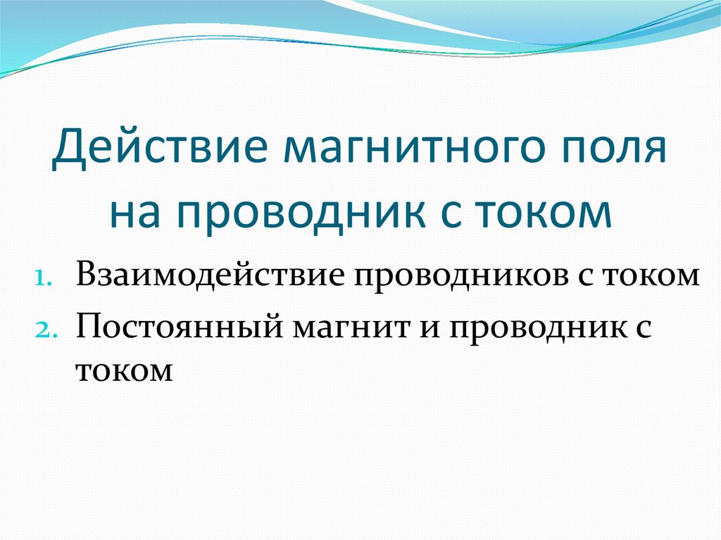 Действие магнитного поля на проводник с током. Взаимодействие проводников с током
