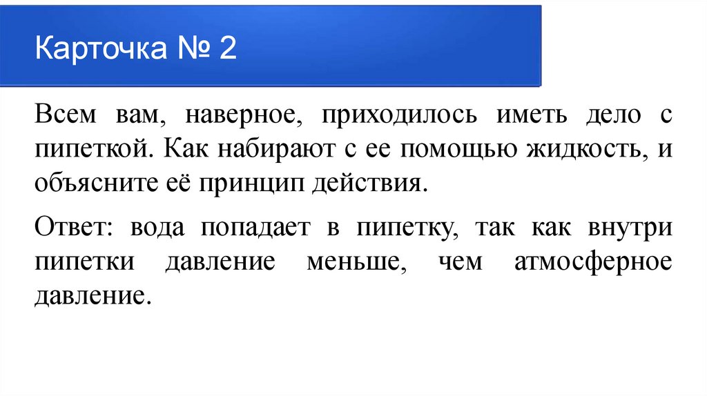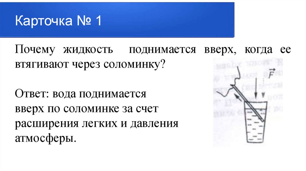 Карточка № 1Почему жидкость поднимается вверх, когда ее