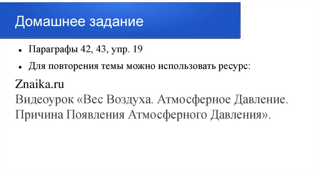 Видеоурок «Вес Воздуха. Атмосферное Давление.