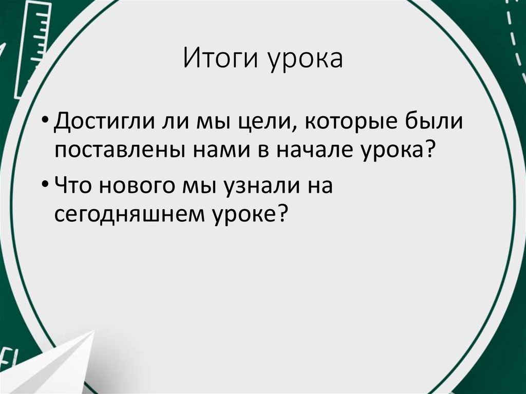 Итоги урока• Достигли ли мы цели, которые были