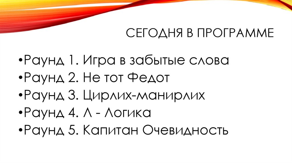 СЕГОДНЯ В ПРОГРАММЕ•Раунд 1. Игра в забытые слова