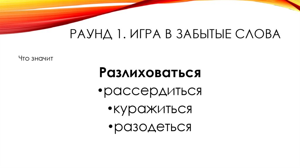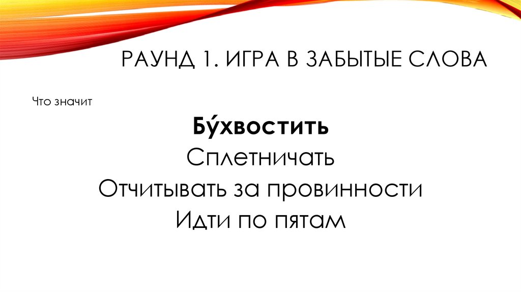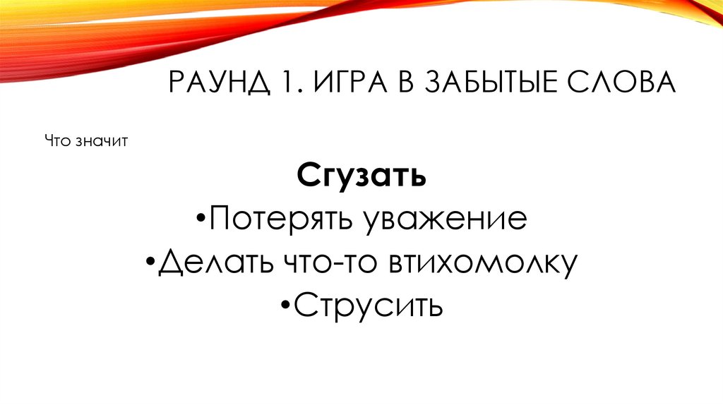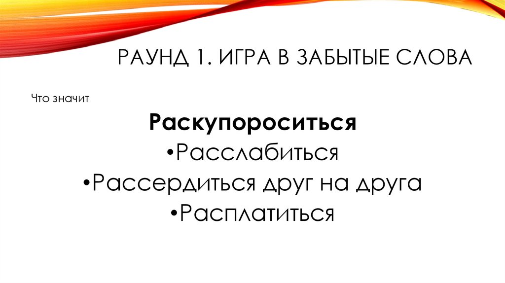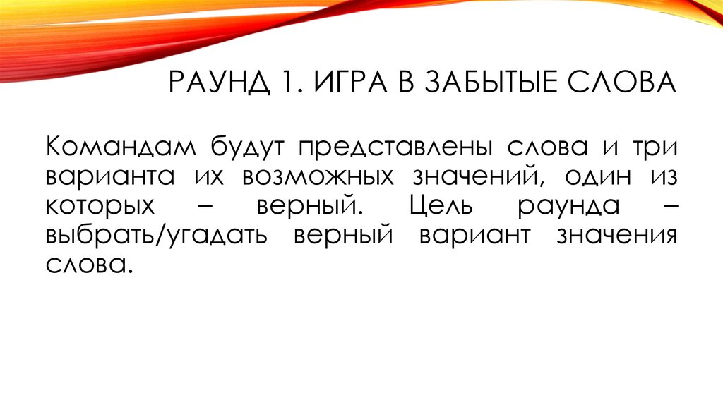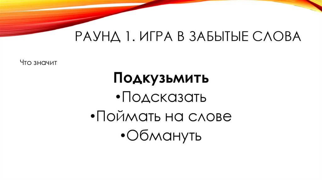 РАУНД 1. ИГРА В ЗАБЫТЫЕ СЛОВАЧто значит
