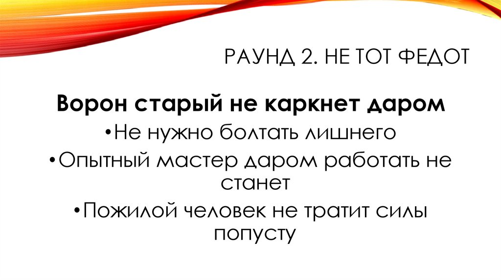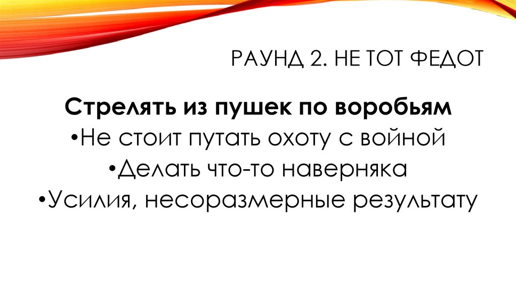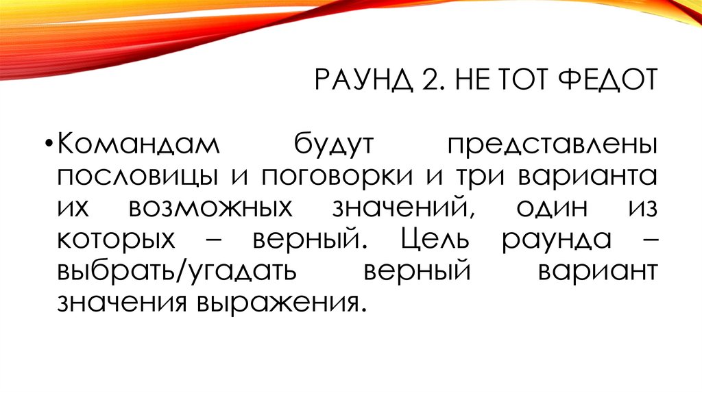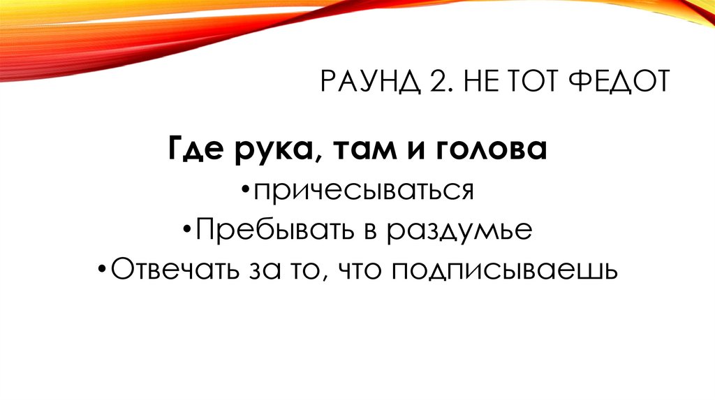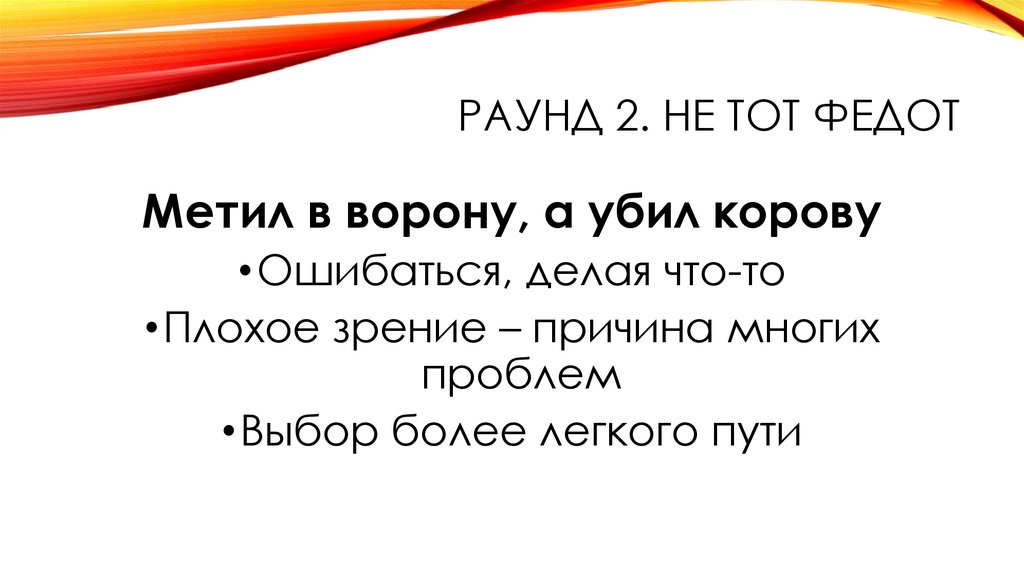 РАУНД 2. НЕ ТОТ ФЕДОТ• Командам