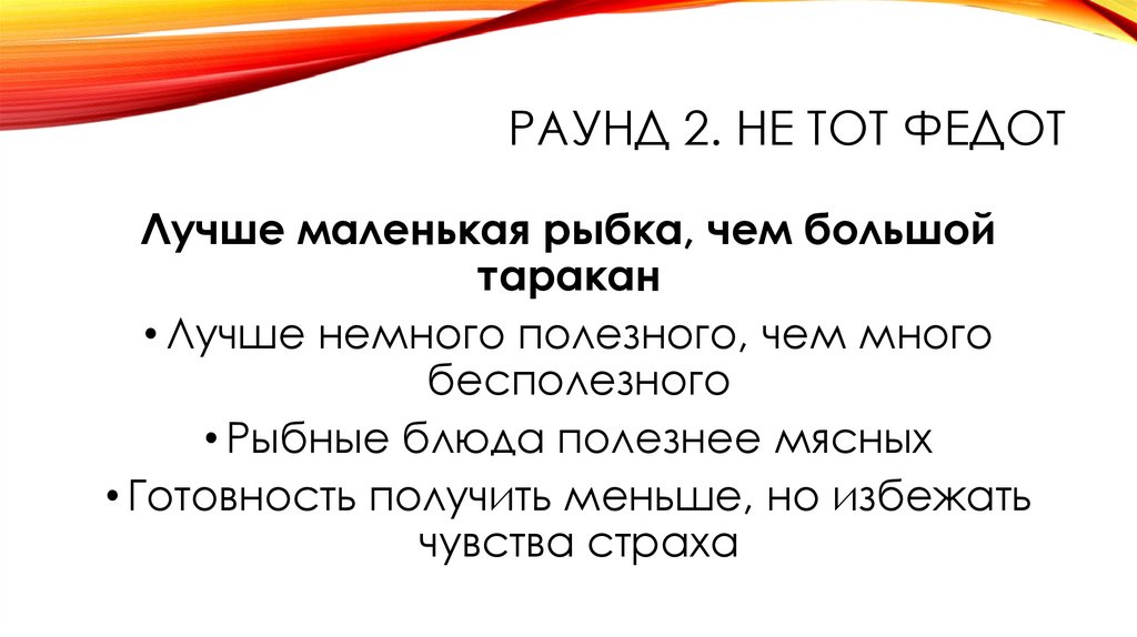 РАУНД 2. НЕ ТОТ ФЕДОТЛучше маленькая рыбка, чем большой