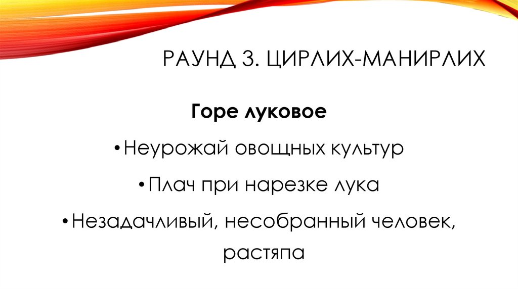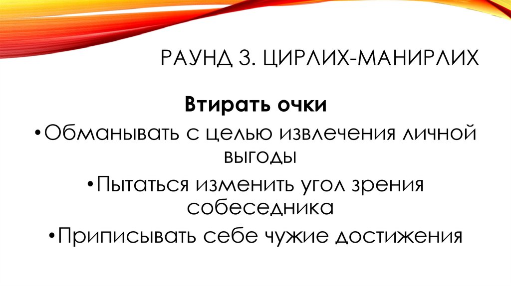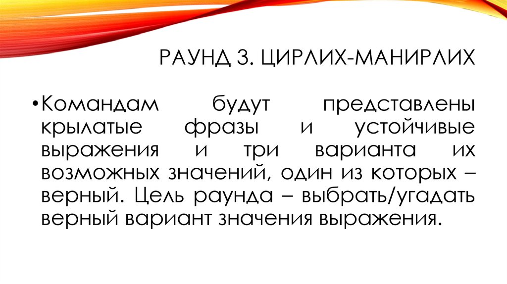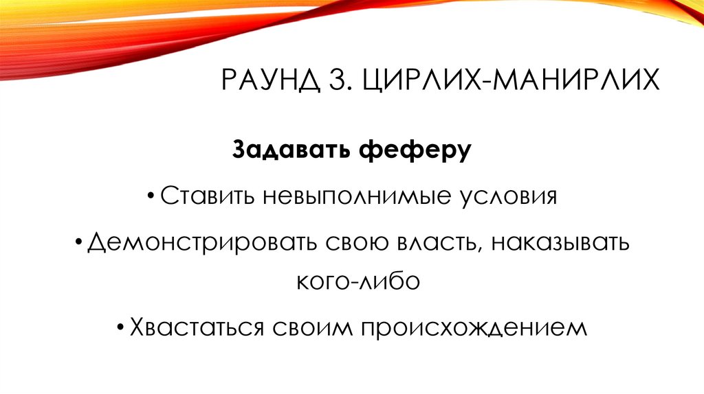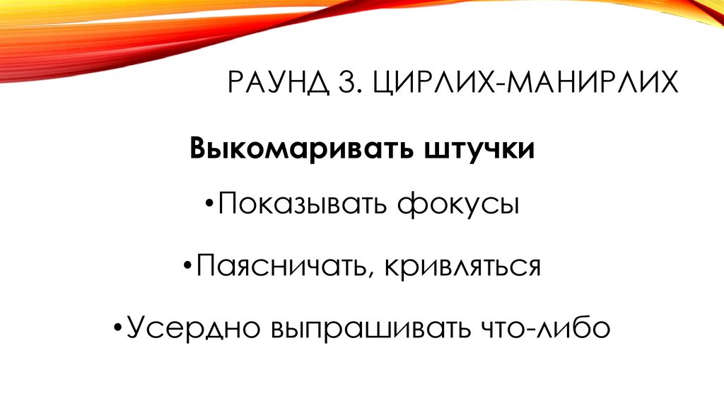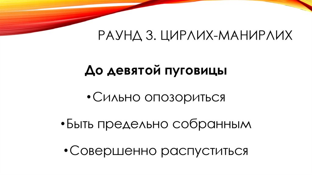 •Раунд 3. Цирлих-манирлих