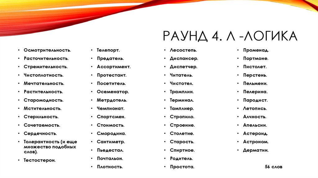 56 слов