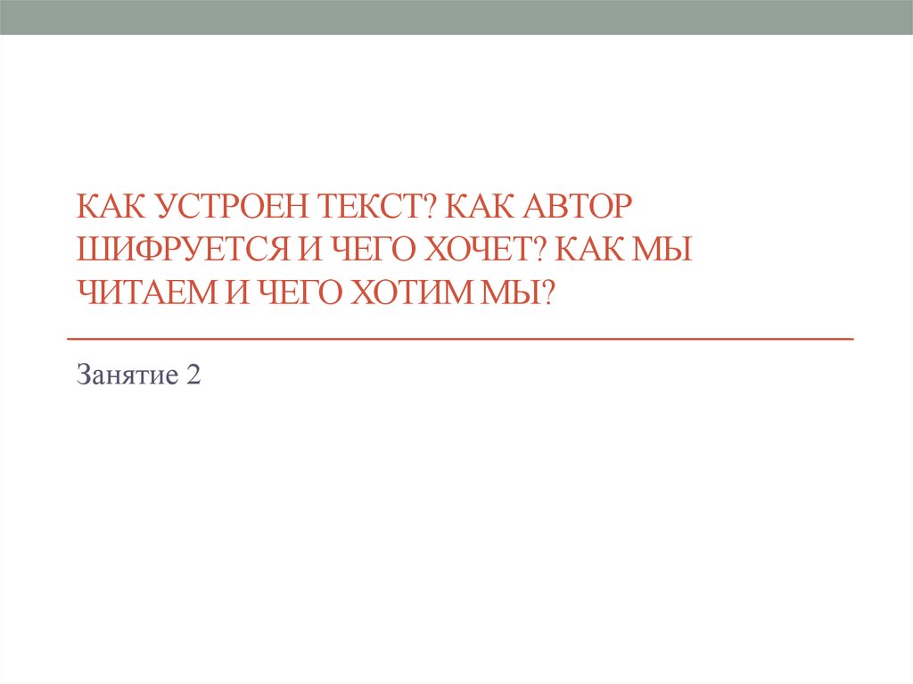 КАК УСТРОЕН ТЕКСТ? КАК АВТОРШИФРУЕТСЯ И ЧЕГО ХОЧЕТ? КАК МЫ