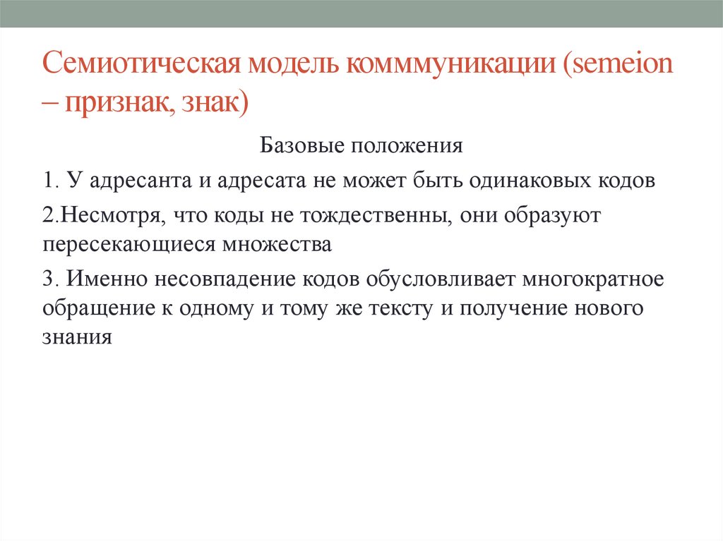 Семиотическая модель комммуникации (semeion– признак, знак)