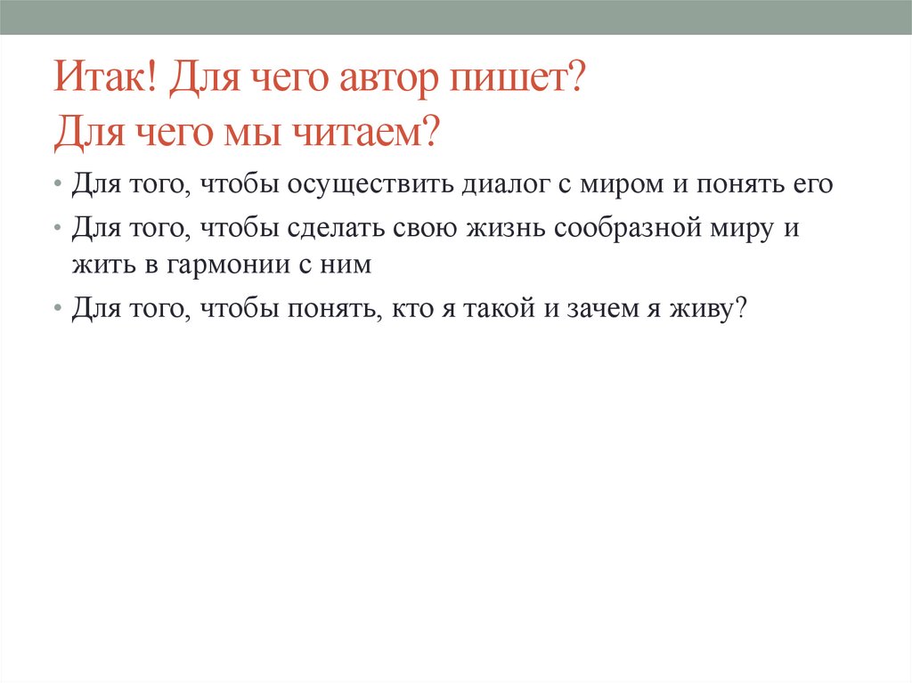 Итак! Для чего автор пишет?Для чего мы читаем?