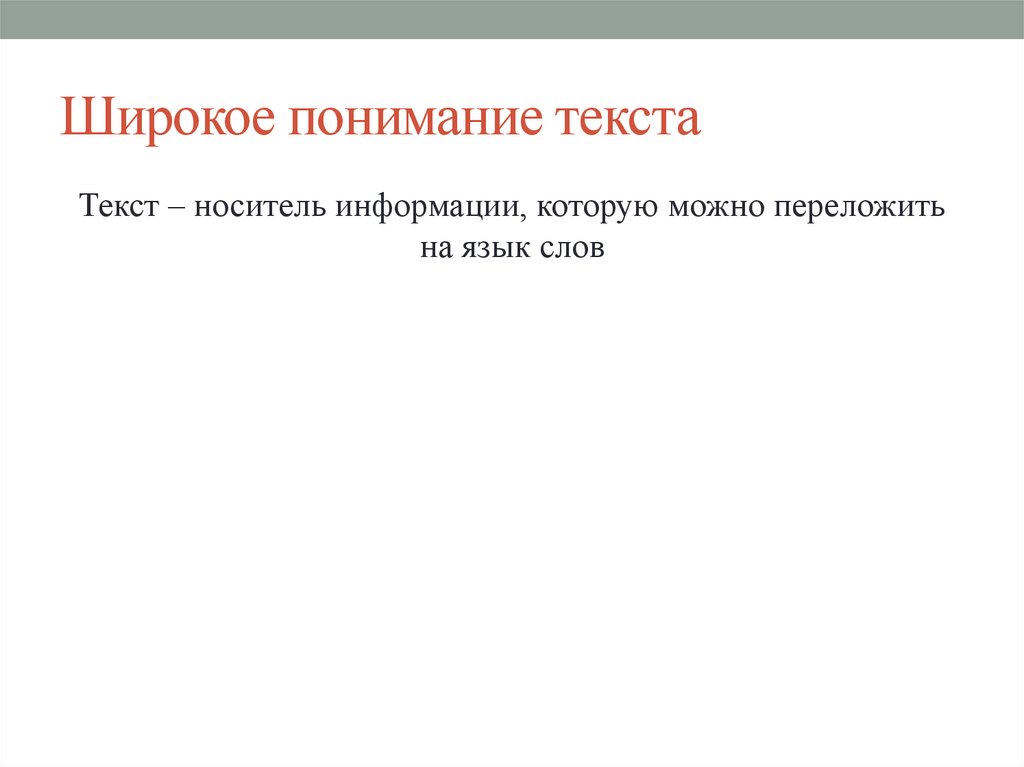 Широкое понимание текстаТекст – носитель информации, которую можно переложить