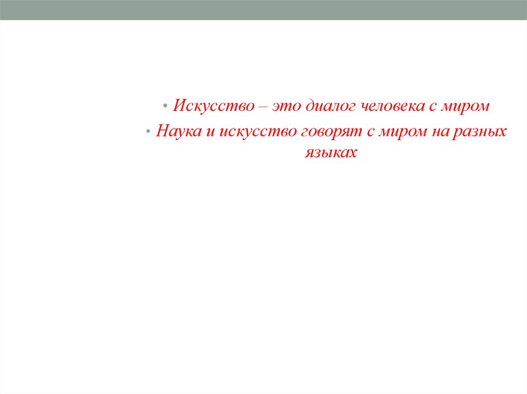 • Искусство – это диалог человека с миром• Наука и искусство говорят с миром на разных