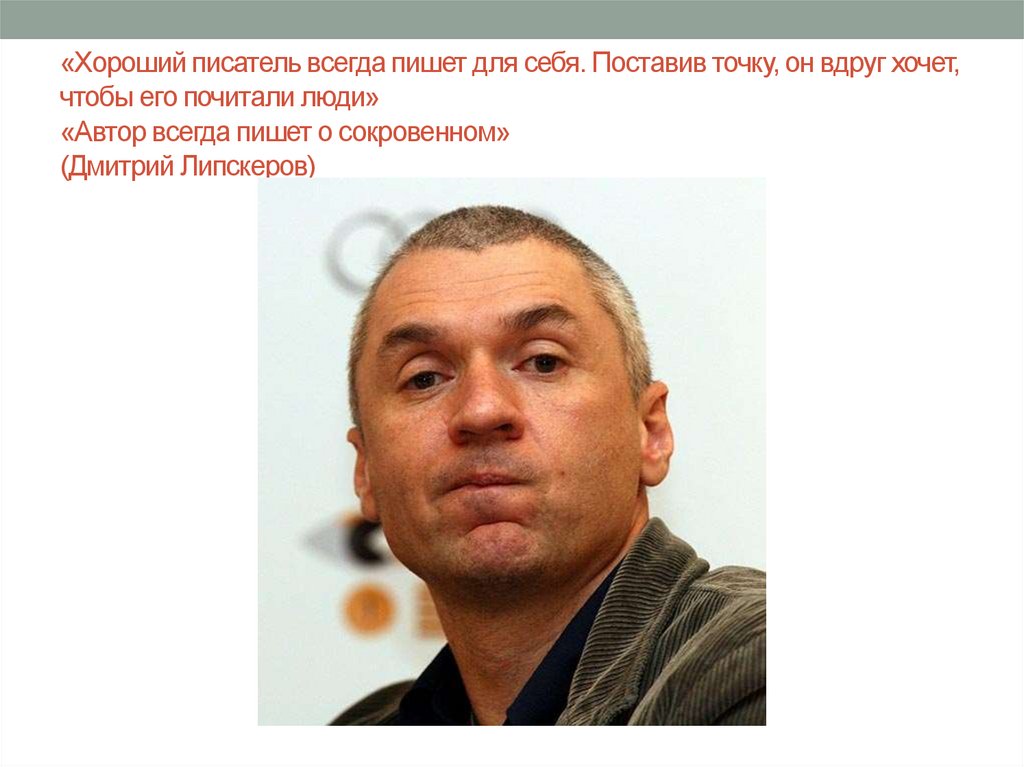«Хороший писатель всегда пишет для себя. Поставив точку, он вдруг хочет,чтобы его почитали люди»
