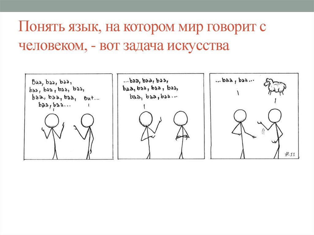 Понять язык, на котором мир говорит счеловеком, - вот задача искусства