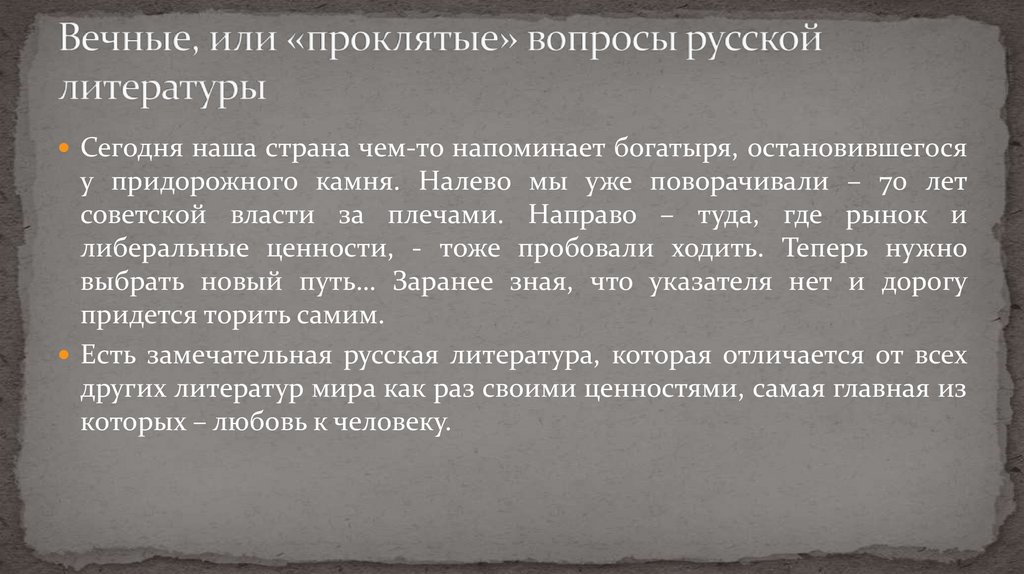 Сегодня наша страна чем-то напоминает богатыря, остановившегосяу придорожного камня. Налево мы уже поворачивали – 70 лет