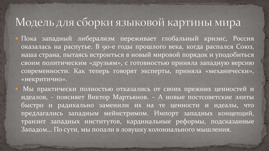предлагались западным мейнстримом. Импорт западных концепций,