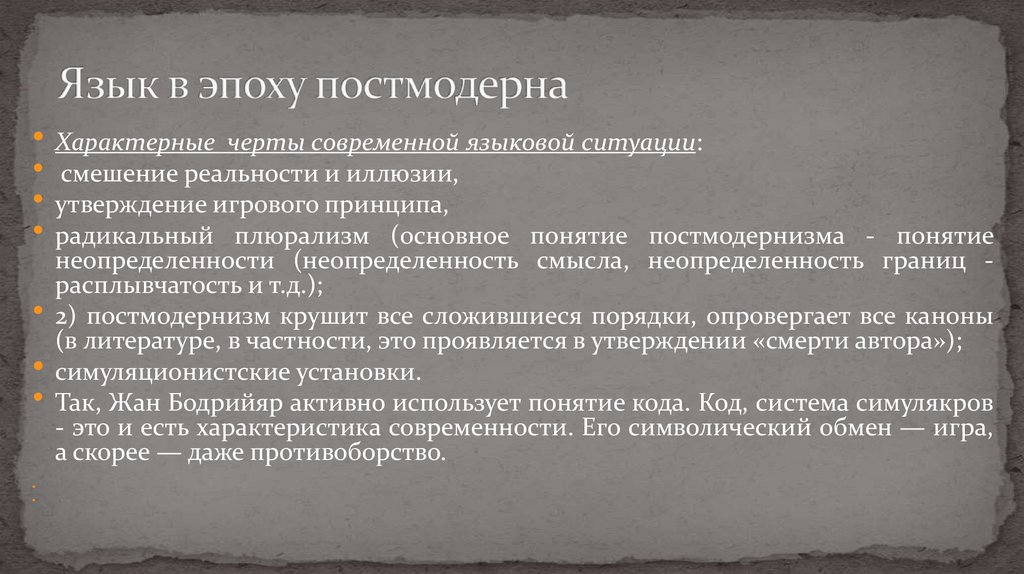 Характерные черты современной языковой ситуации:смешение реальности и иллюзии,