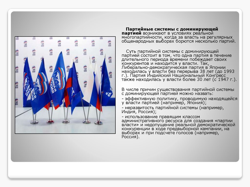 Партийные системы с доминирующейпартией возникают в условиях реальной