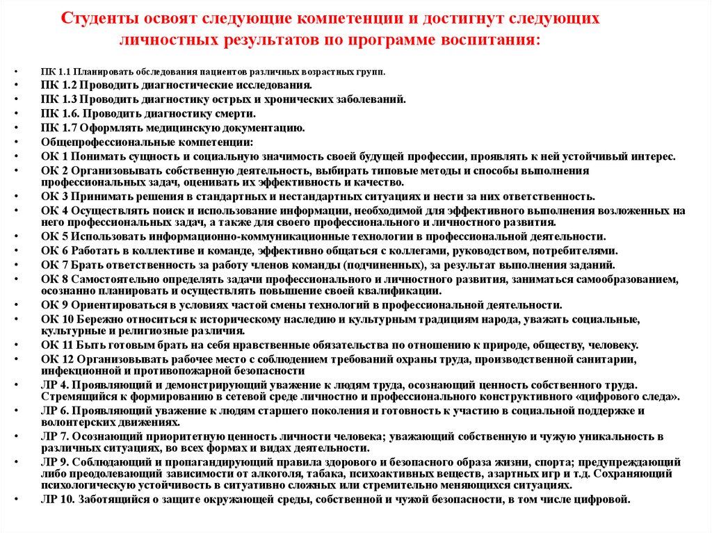 Студенты освоят следующие компетенции и достигнут следующихличностных результатов по программе воспитания: