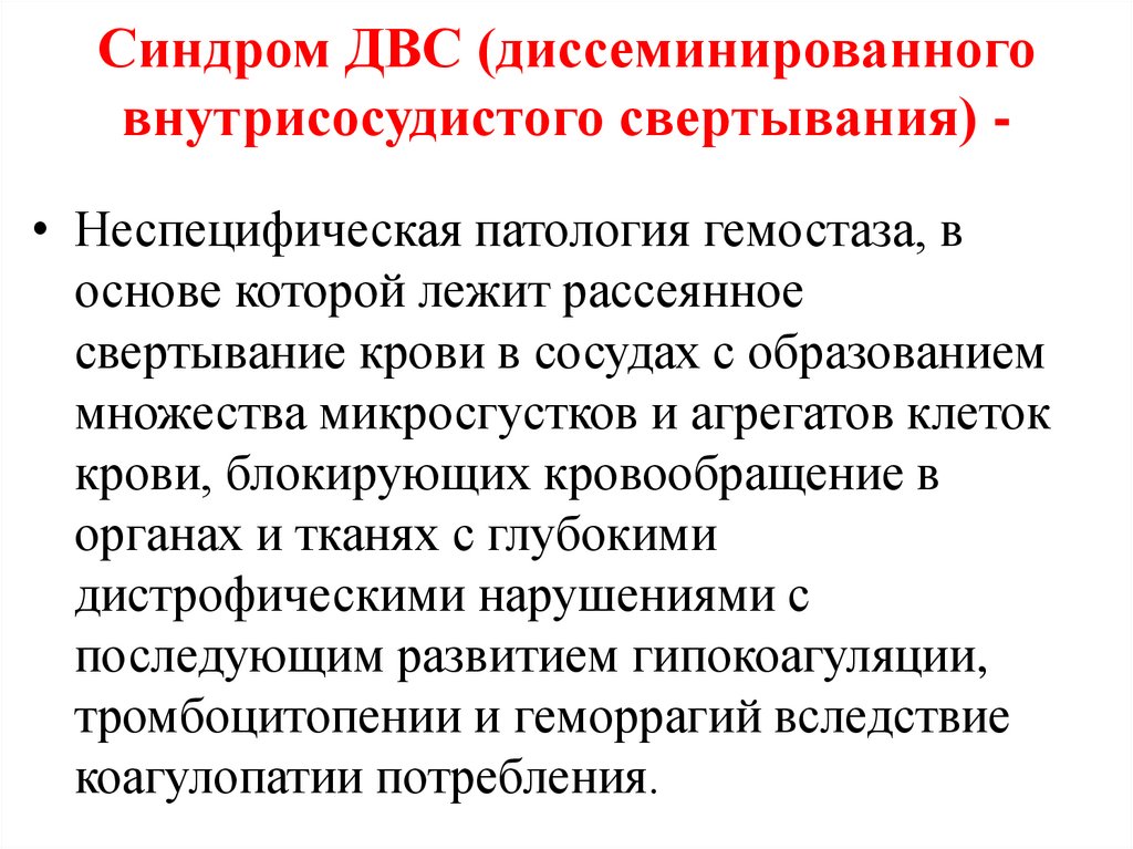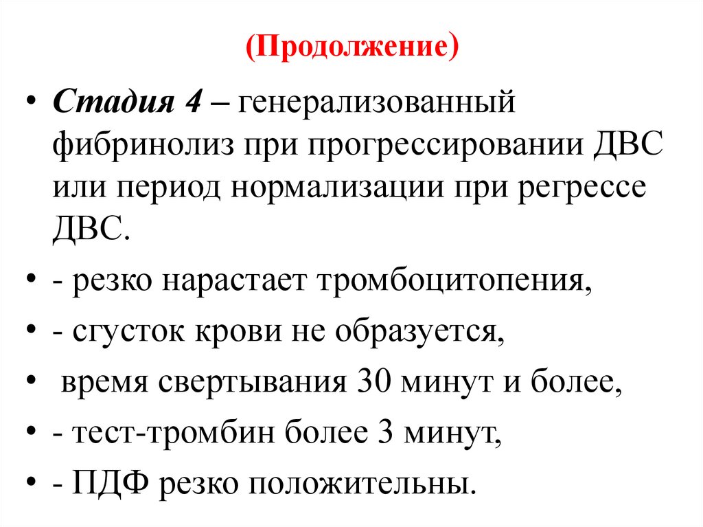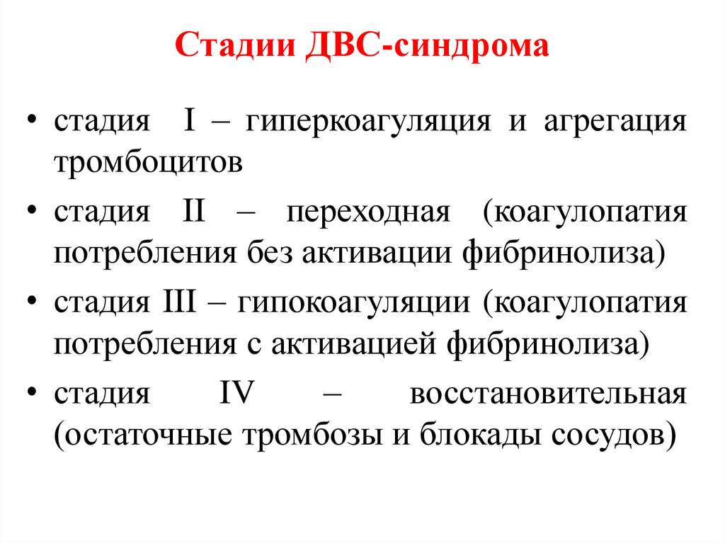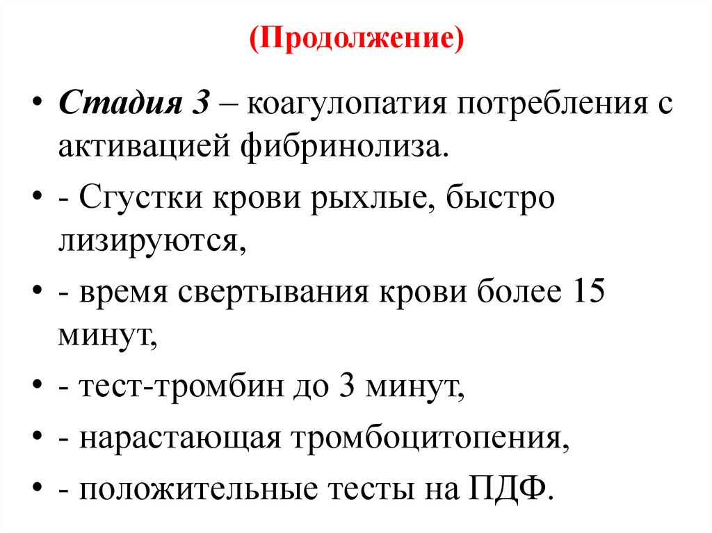 (Продолжение)• Стадия 3 – коагулопатия потребления с
