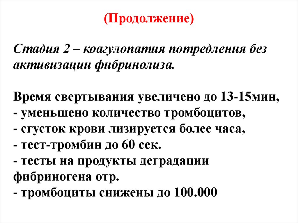 (Продолжение)Стадия 2 – коагулопатия потредления без