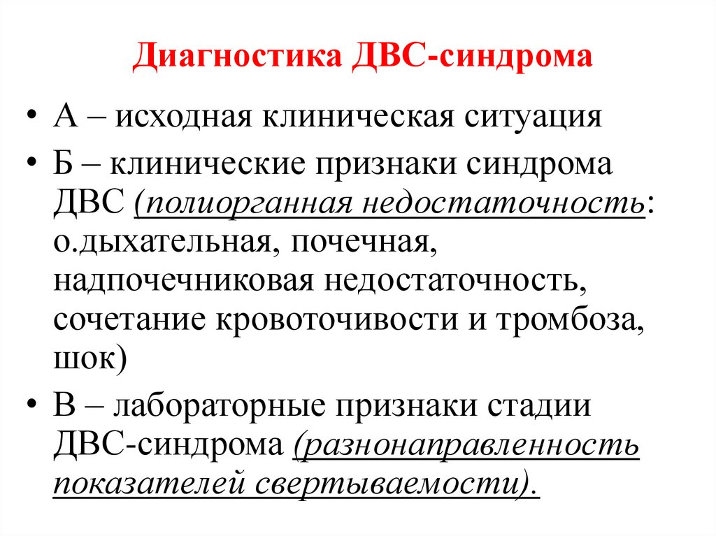 Диагностика ДВС-синдрома• А – исходная клиническая ситуация