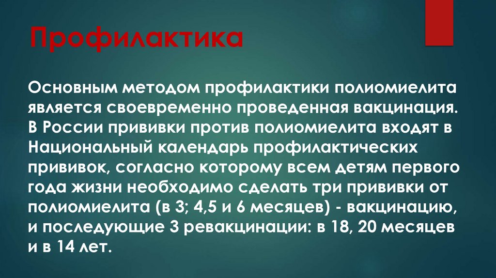 ПрофилактикаОсновным методом профилактики полиомиелита