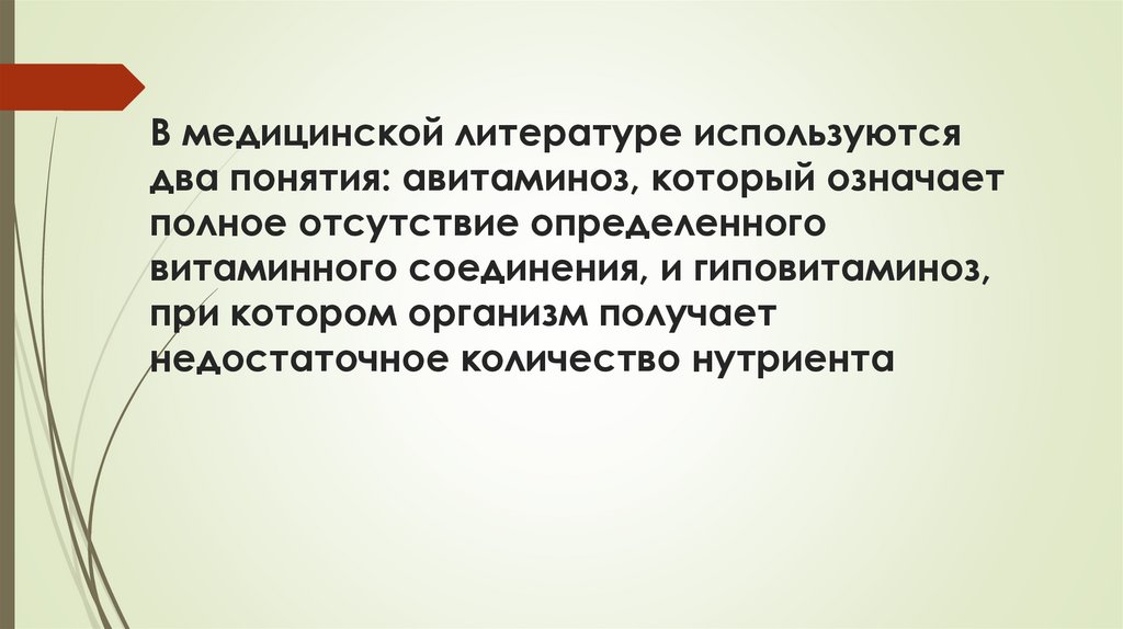 В медицинской литературе используютсядва понятия: авитаминоз, который означает