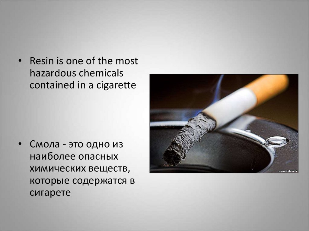 • Сигарета содержит