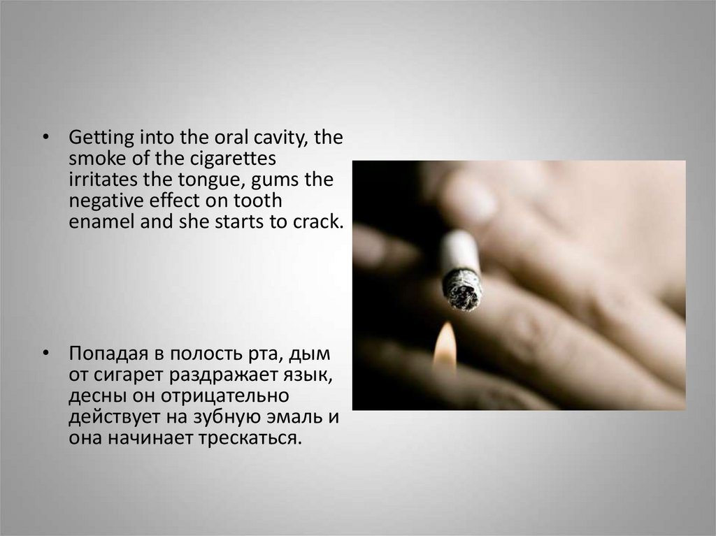 • Getting into the oral cavity, thesmoke of the cigarettes