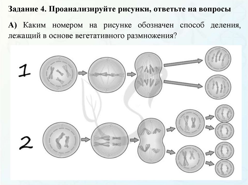 Задание 4. Проанализируйте рисунки, ответьте на вопросыА) Каким номером на рисунке обозначен способ деления,