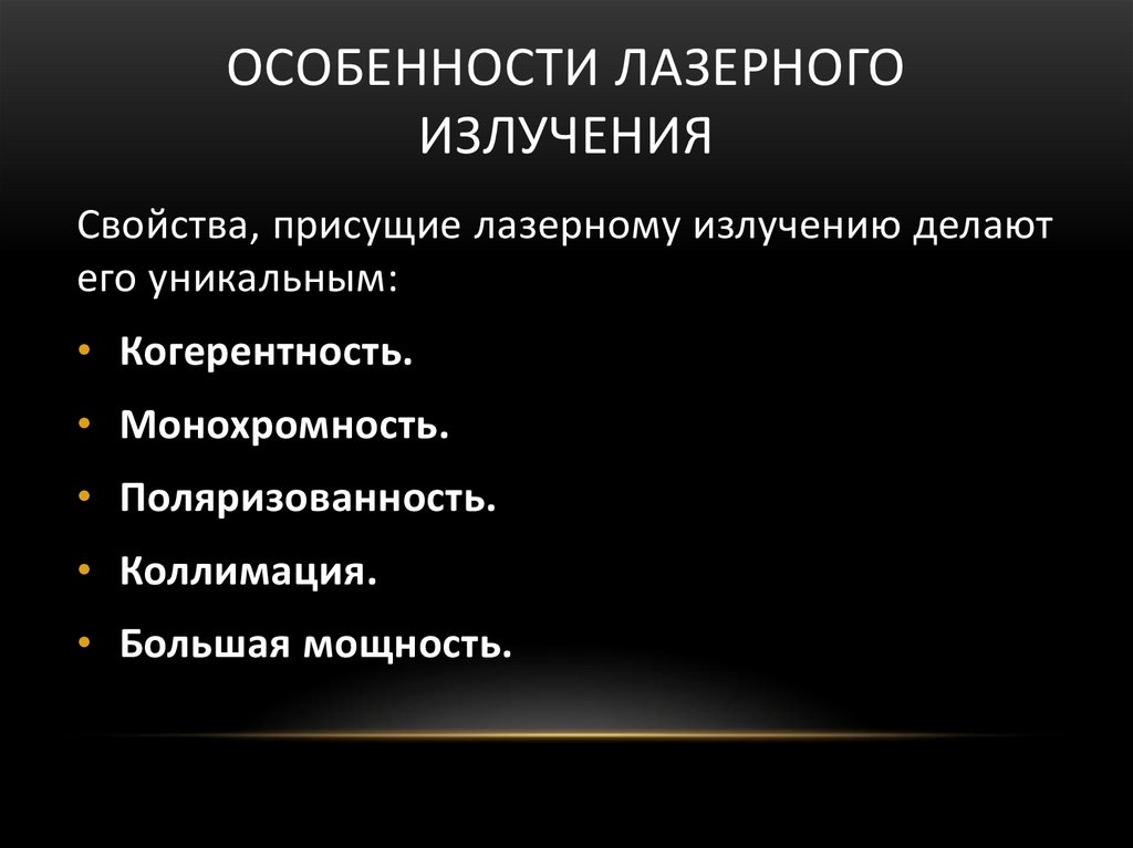 ОСОБЕННОСТИ ЛАЗЕРНОГОИЗЛУЧЕНИЯ