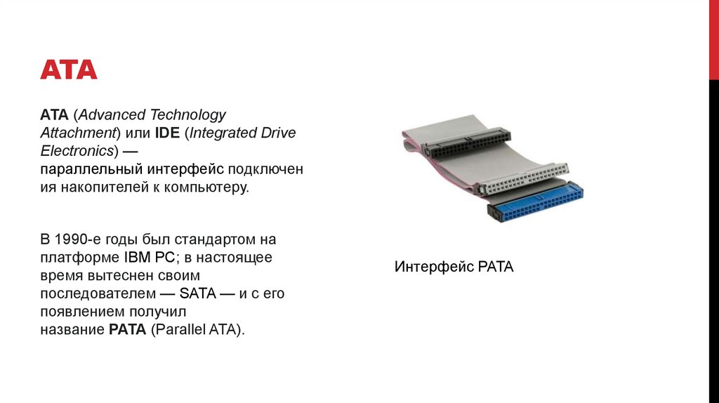 традиционный ATA стали именовать Parallel ATA, имея в виду способ передачи