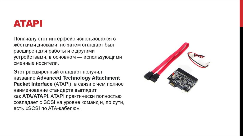 ATAPIПоначалу этот интерфейс использовался с