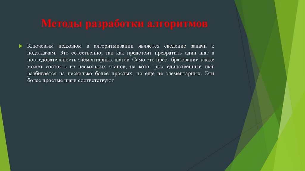 Методы разработки алгоритмовКлючевым подходом в алгоритмизации является сведение задачи к